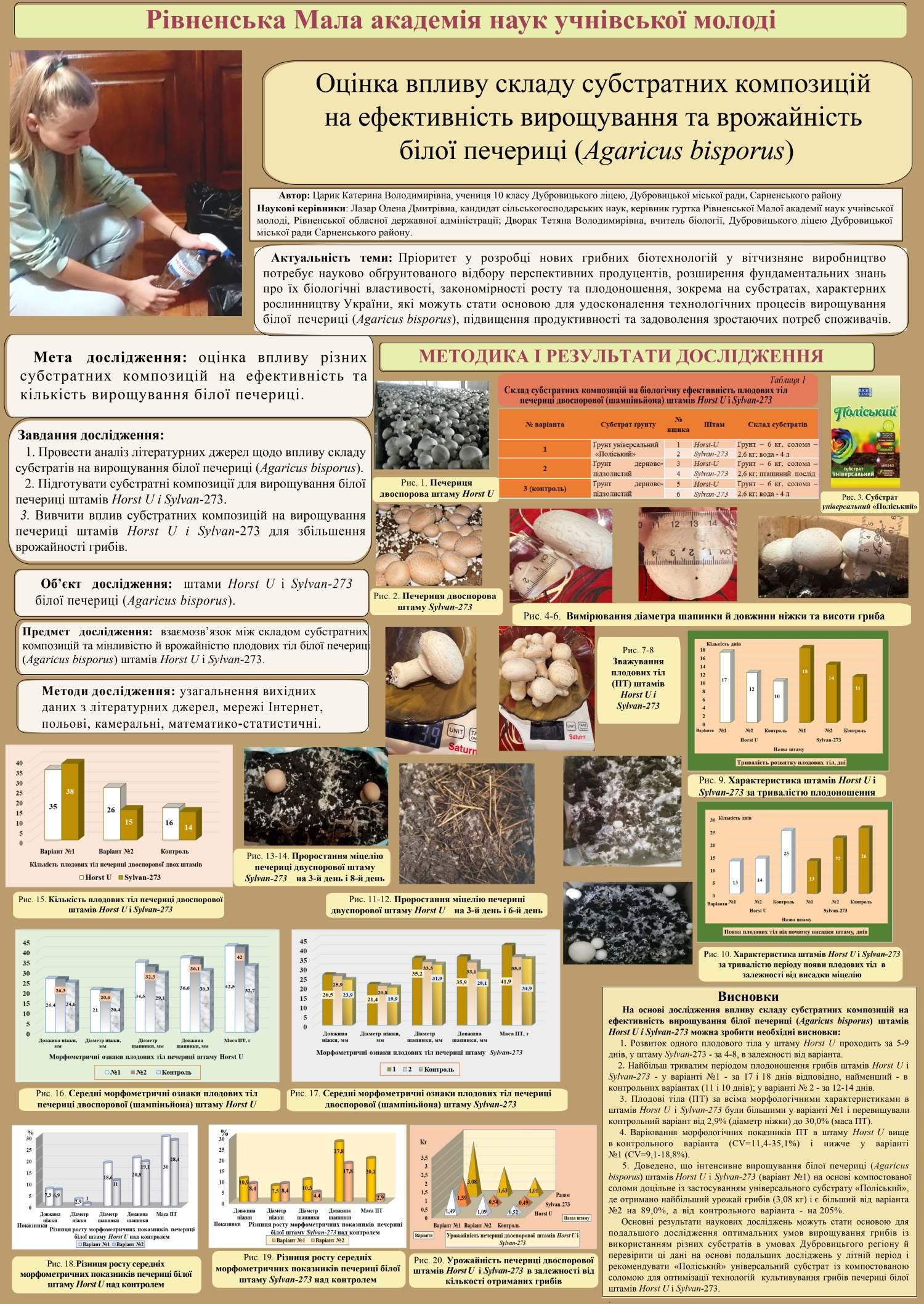 ОЦІНКА ВПЛИВУ СКЛАДУ СУБСТРАТНИХ КОМПОЗИЦІЙ НА ЕФЕКТИВНІСТЬ ВИРОЩУВАННЯ ТА ВРОЖАЙНІСТЬ БІЛОЇ ПЕЧЕРИЦІ (AGARICUS BISPORUS)