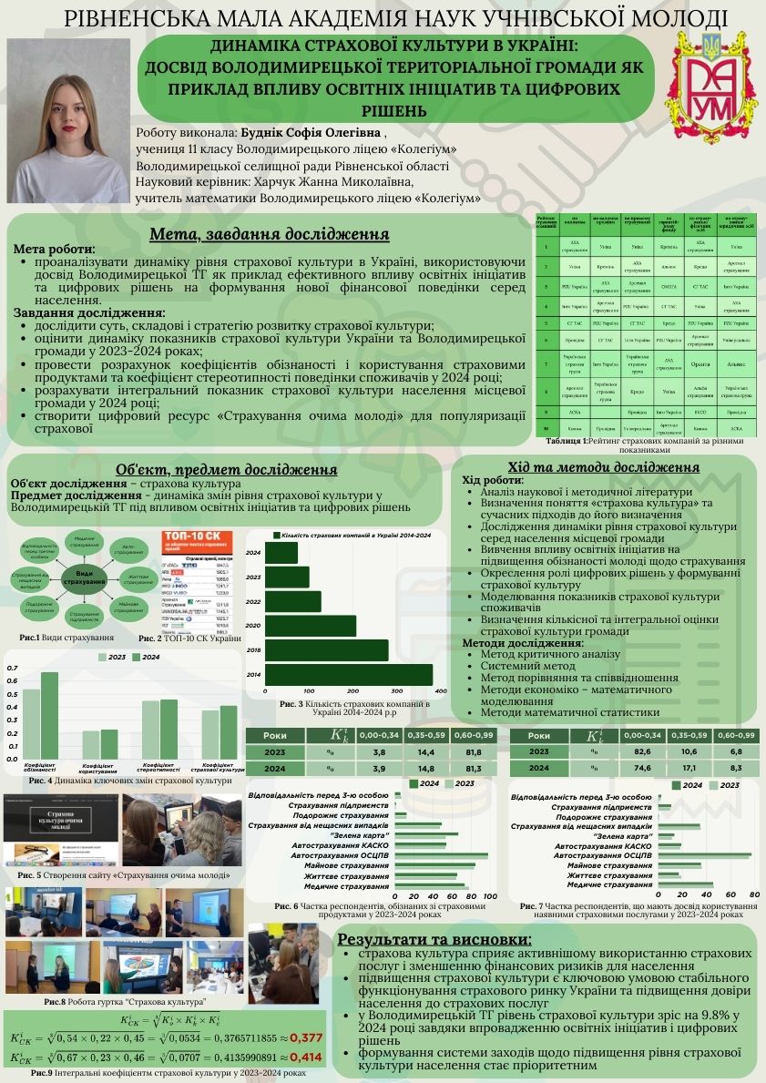 ДИНАМІКА СТРАХОВОЇ КУЛЬТУРИ В УКРАЇНІ: ЛОСВІД ВОЛОДИМИРЕЦЬКОЇ ТЕР. ГРОМАДИ ЯК ПРИКЛАД ВПЛИВУ ОСВІТНІХ ІНІЦІАТИВ ТА ЦИФРОВИХ РІШЕНЬ Опубліковано: 10.06.202510.06.2025 by adminhq БУДНІК Софія Олегівна Секція ‘Фінанси, банківська справа та страхування’