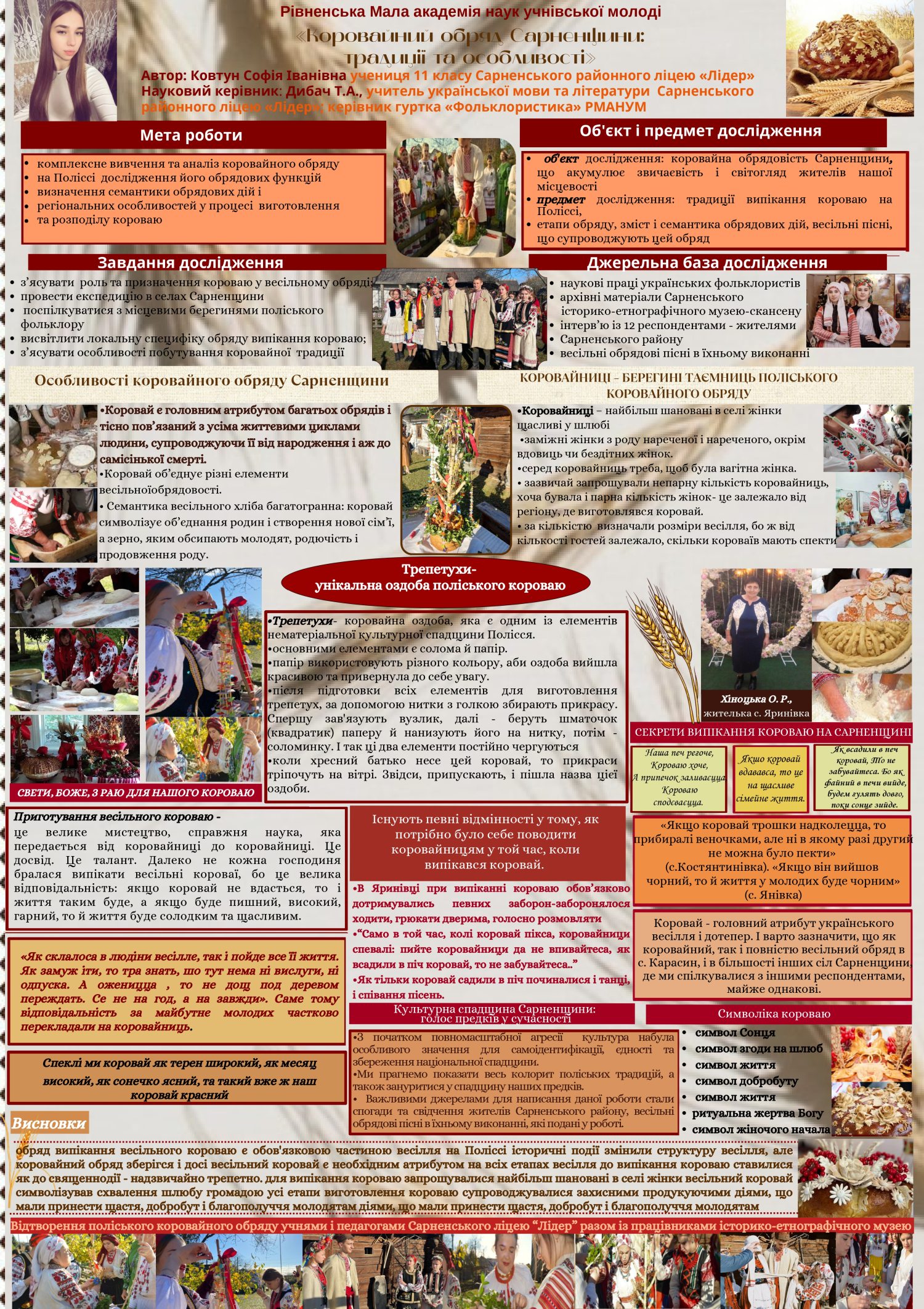 КОРОВАЙНИЙ ОБРЯД САРНЕНЩИНИ: ТРАДИЦІЇ ТА ОСОБЛИВОСТІ – Рівненська Мала академія наук учнівської молоді
