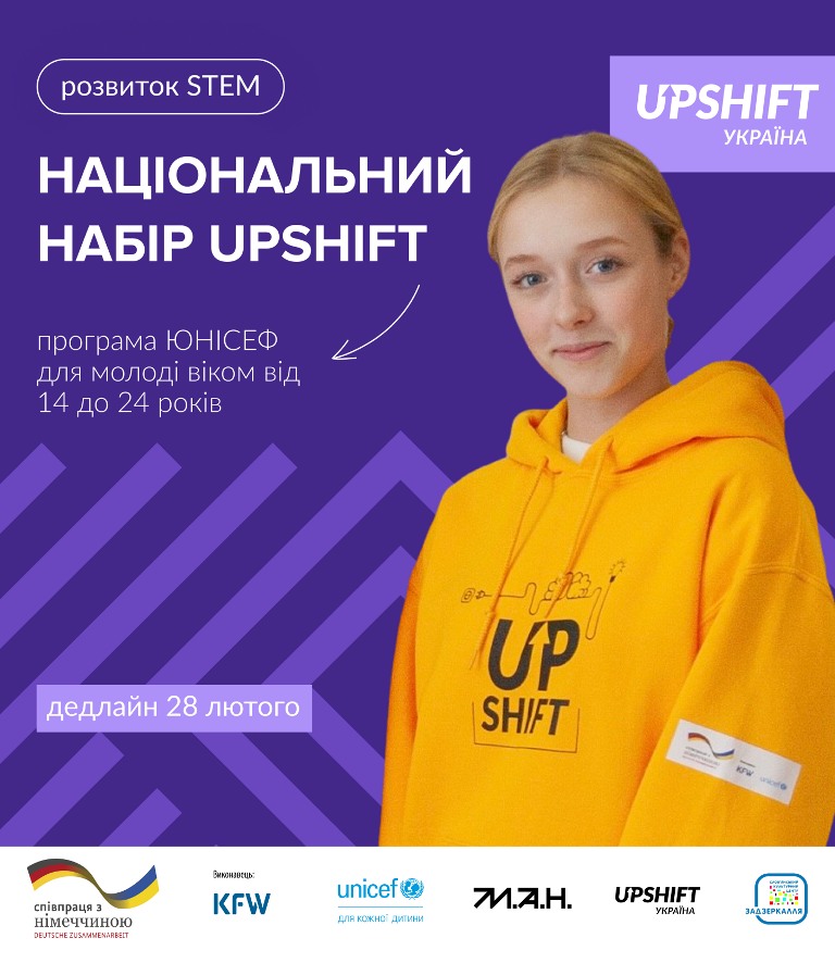 Дитячий фонд ООН (ЮНІСЕФ) та Мала академія наук України запускають набір на інноваційну програму UPSHIFT. Це глобальна інноваційна програма, яка реалізується у понад 40 країнах.