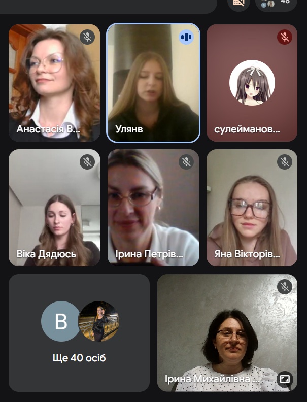 • Віторія Дядюсь, десятикласниця Обласного наукового ліцею в м.Рівне Рівненської обласної ради, представила дослідження “Peculiarities of the Implementation of Communicative Strategies, Tactics, and Expressive Means in Adolescent Speech (Based on the TV Series “Stranger Things”), у якому аналізувала мовленнєву поведінку підлітків, зосередившись на комунікативних стратегіях і засобах виразності;